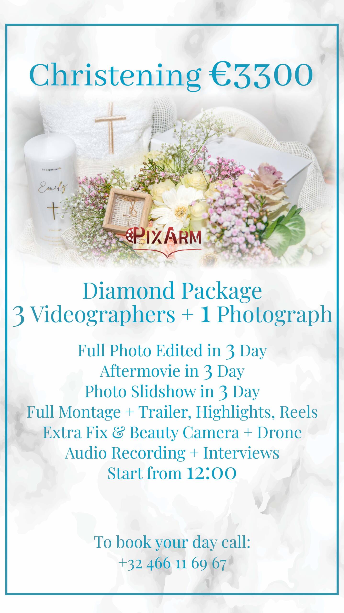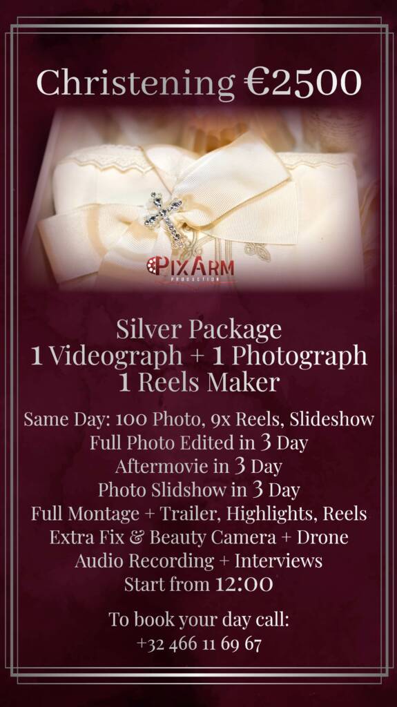 Your child’s christening is a sacred moment worth capturing in every detail – the innocence, the joy, the solemnity that make this day uniquely meaningful. At PixArm, we specialize in christening photography and videography across Belgium and Europe, creating timeless memories with a cinematic touch. Whether you dream of an intimate family gathering or a grand celebration afterward, our team ensures every blessing, every smile, and every heartfelt moment is beautifully preserved.
