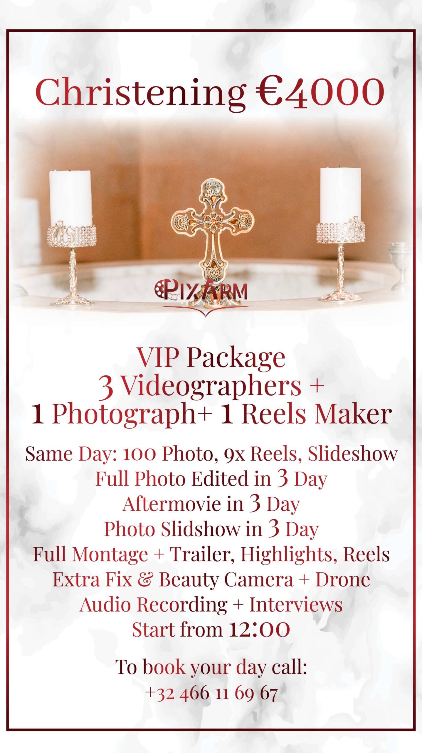By choosing the VIP Package, you are investing in a flawless archive of your Christening celebration, secured by our largest team, while simultaneously receiving an instant, high-impact social media presence.