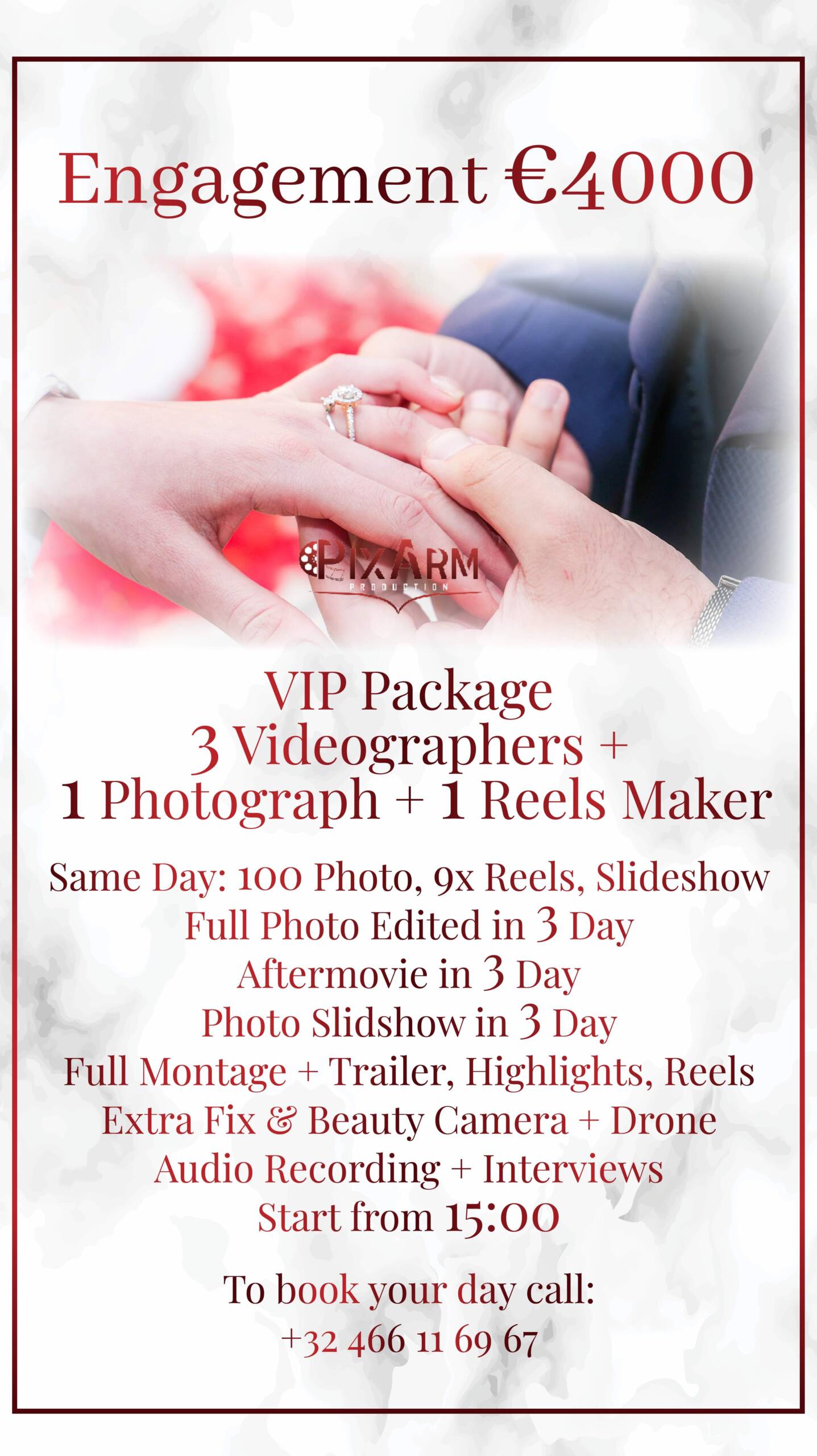 By choosing the VIP Package, you are investing in a flawless archive of your engagement story, secured by our largest team, while simultaneously receiving an instant, high-impact social media presence.